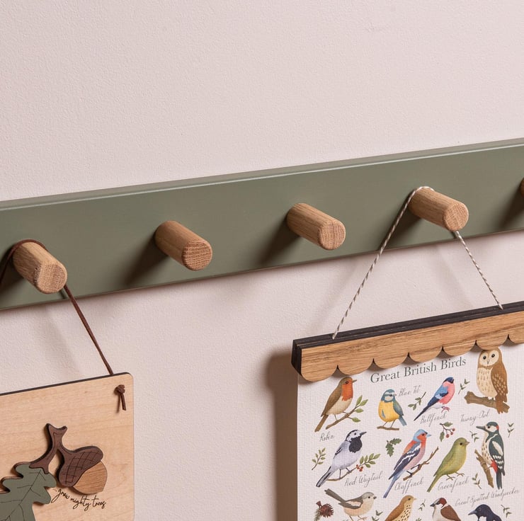 Kids Bedroom Peg rail - Woodland Sage with Solid Oak Pegs (Also available in Light Clay - see our listings page)