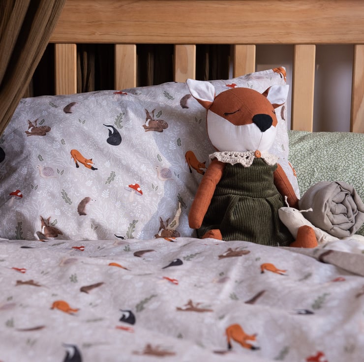 The Nestie Woodland Line Bedding - OEKO-TEX certified 100% cotton.