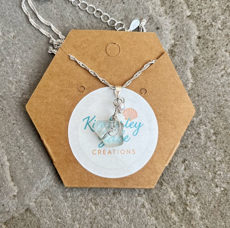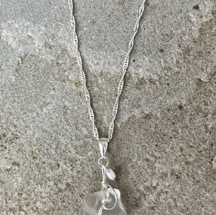 Made using sea glass from Watchet & 925 silver materials and freshwater pearl.