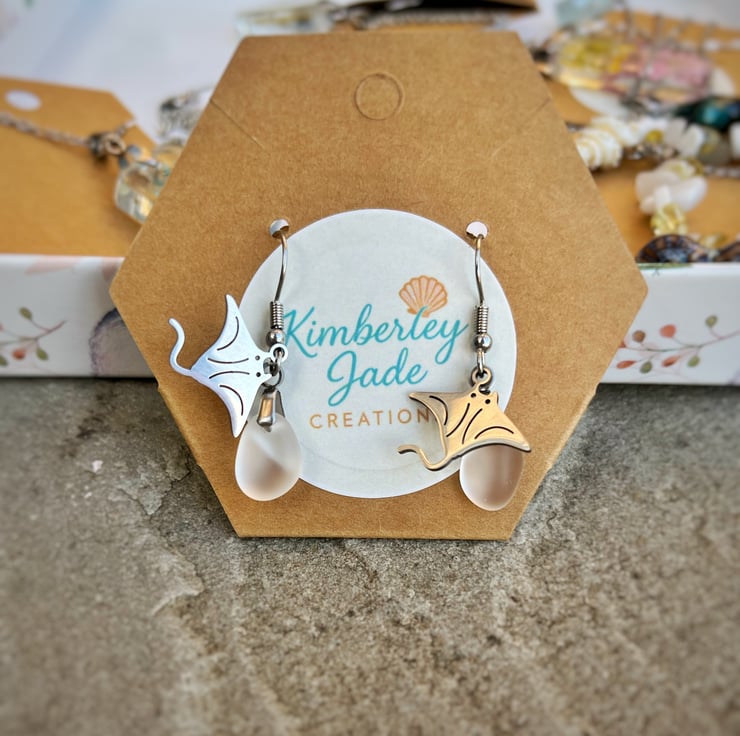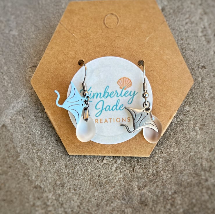 Sting Ray & Sea Glass Earrings