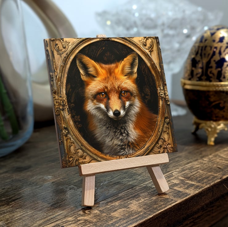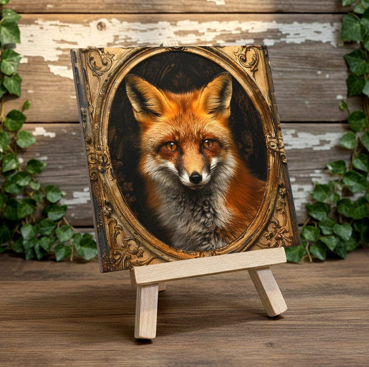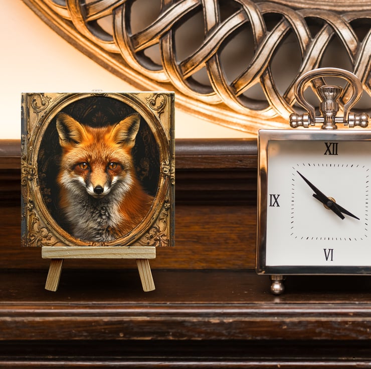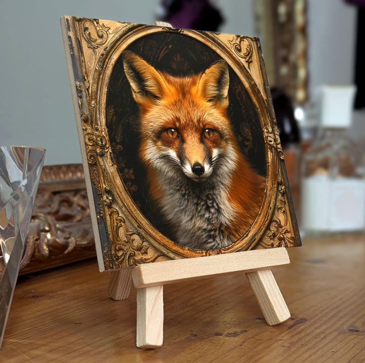 The Cunning Fox Ceramic Tile Art On Easel - Gothic Home Decor - Room Decor