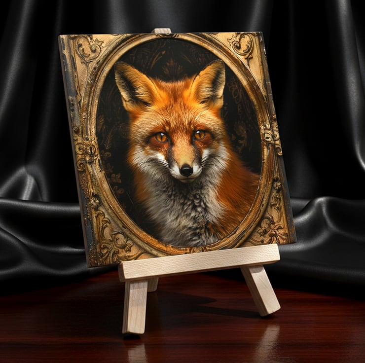 Charming, cunning, and effortlessly elegant – this fox portrait captures the wild spirit of woodland life with a gothic twist. Framed in ornate vintage detailing, it’s a striking piece of home décor that doubles as eye-catching home decor for lovers of nature and the unusual.