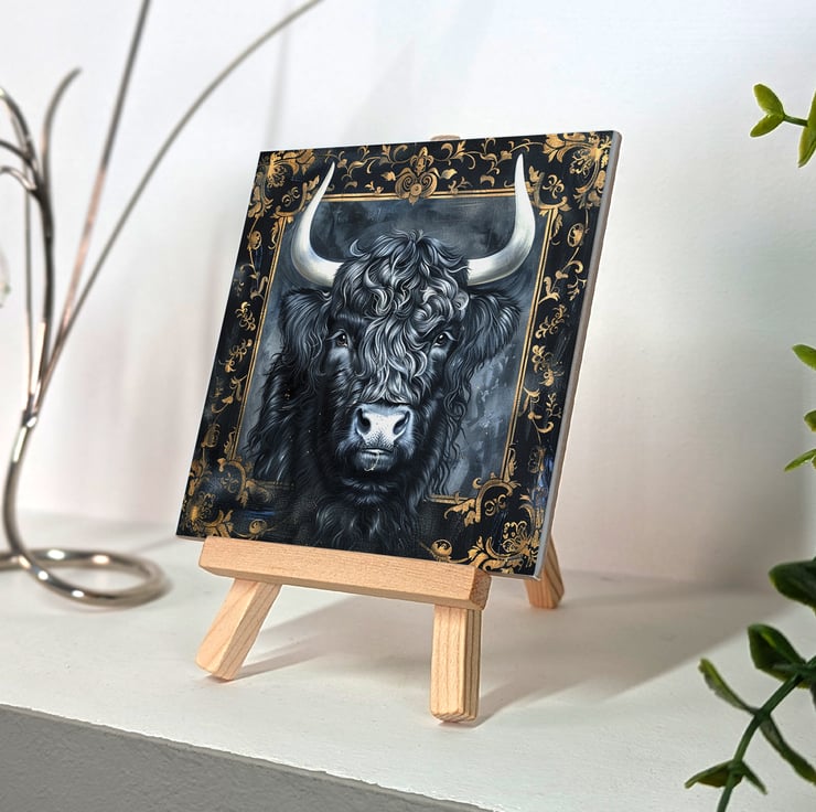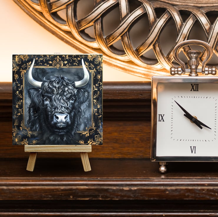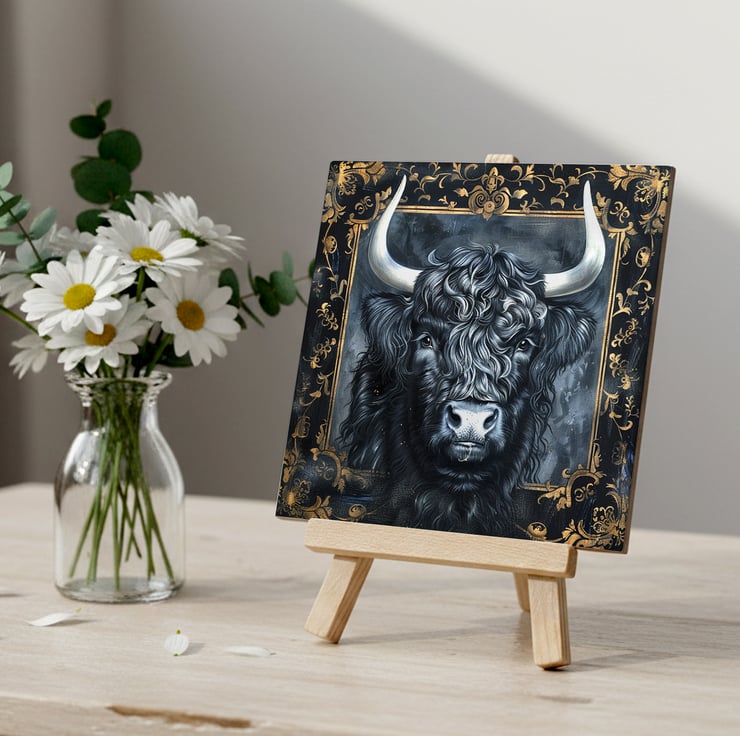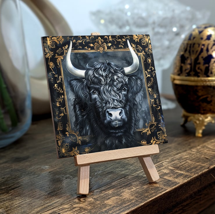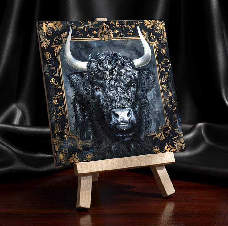 Rich in texture and presence, this Highland Cow portrait combines rural charm with gothic depth. Its dark tones and ornate vintage frame make it a bold choice for anyone seeking room decor with soul – a perfect statement piece to elevate rustic or eclectic home decor with character.