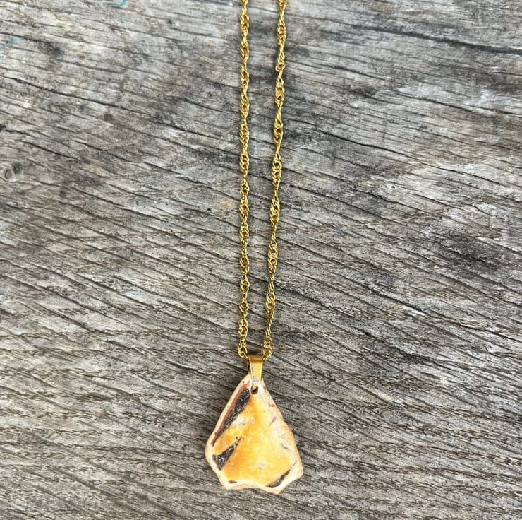 Made using a piece of sea pottery from Watchet & stainless steel.