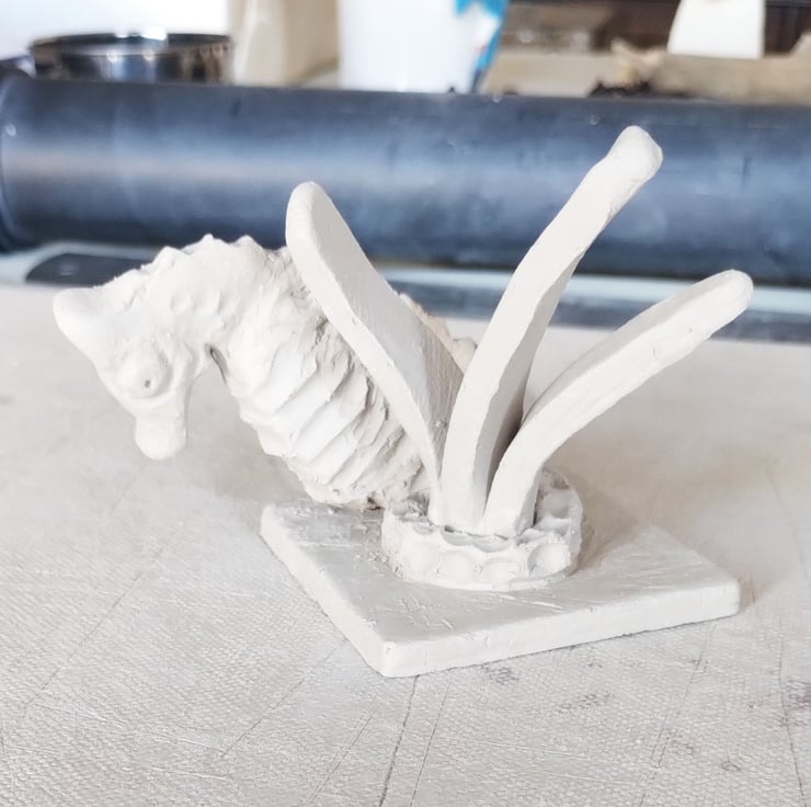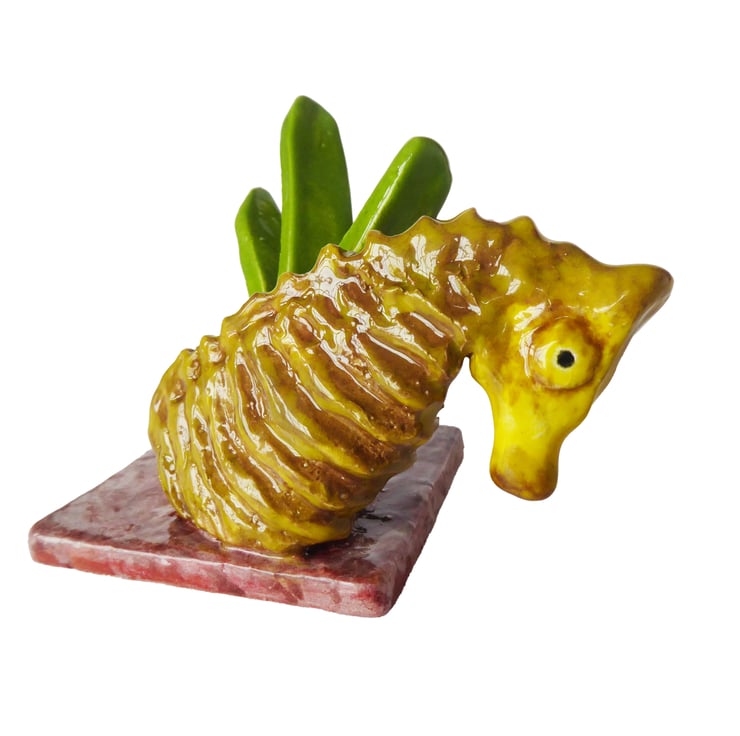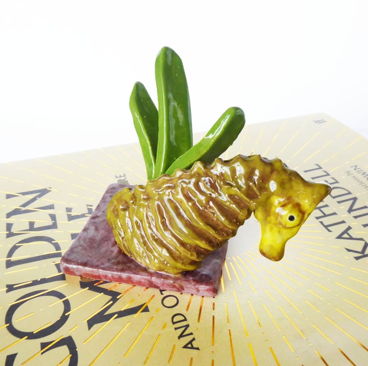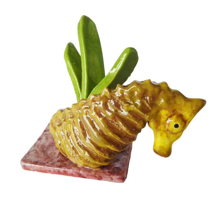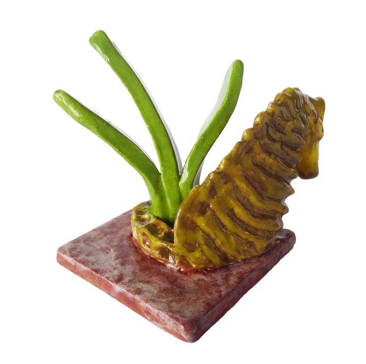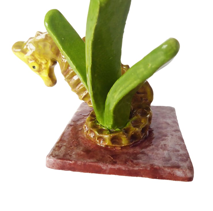 Hand Built Seahorse and Seagrass Mini Ceramic Sculpture.