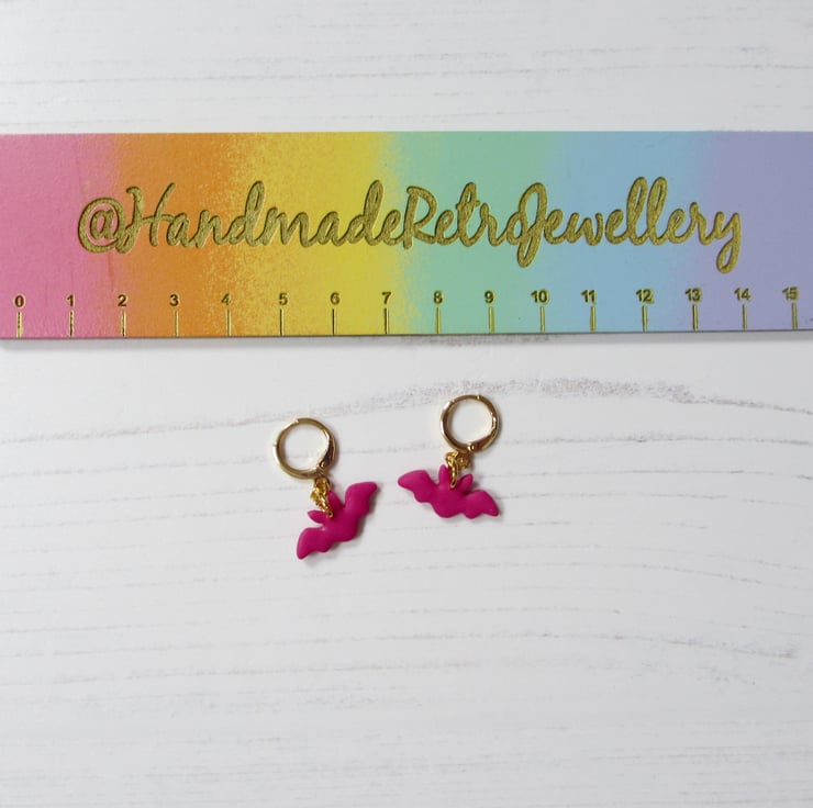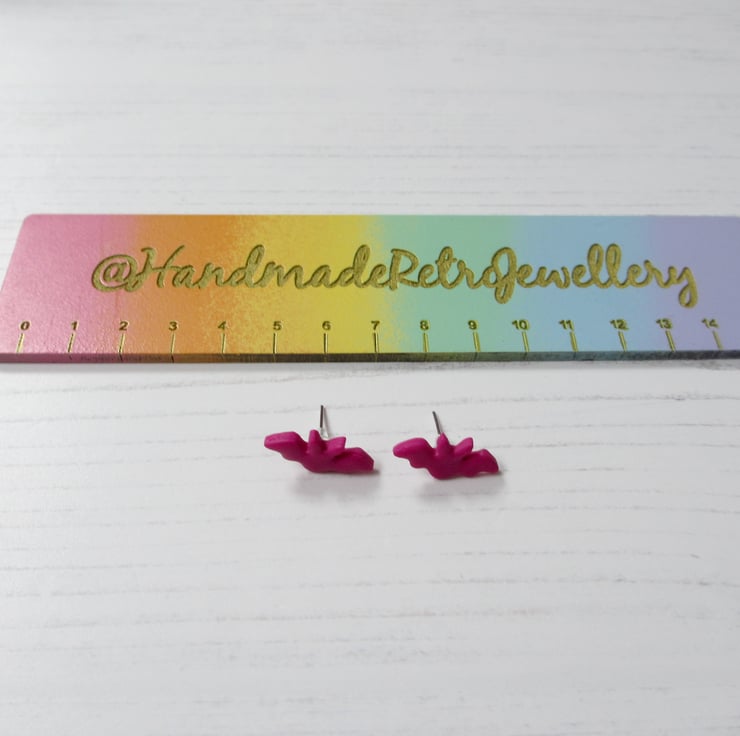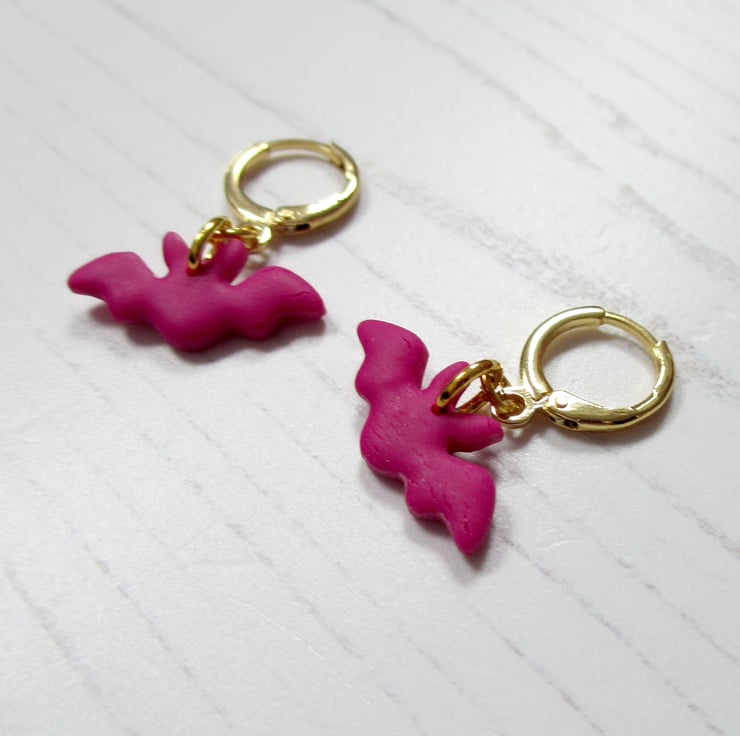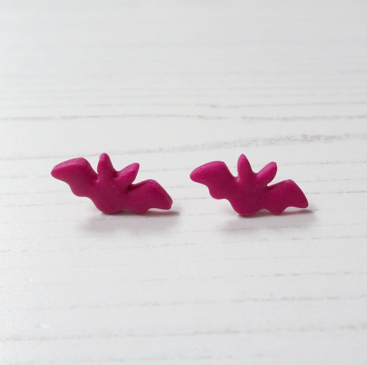 These mini earrings have been carefully hand crafted using pink polymer clay in the shape of teeny tiny flying bats!
