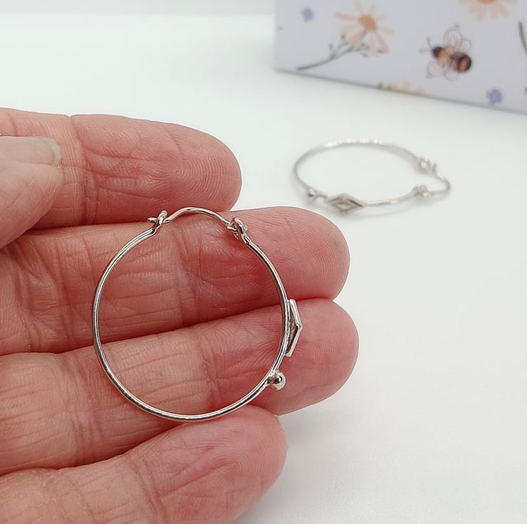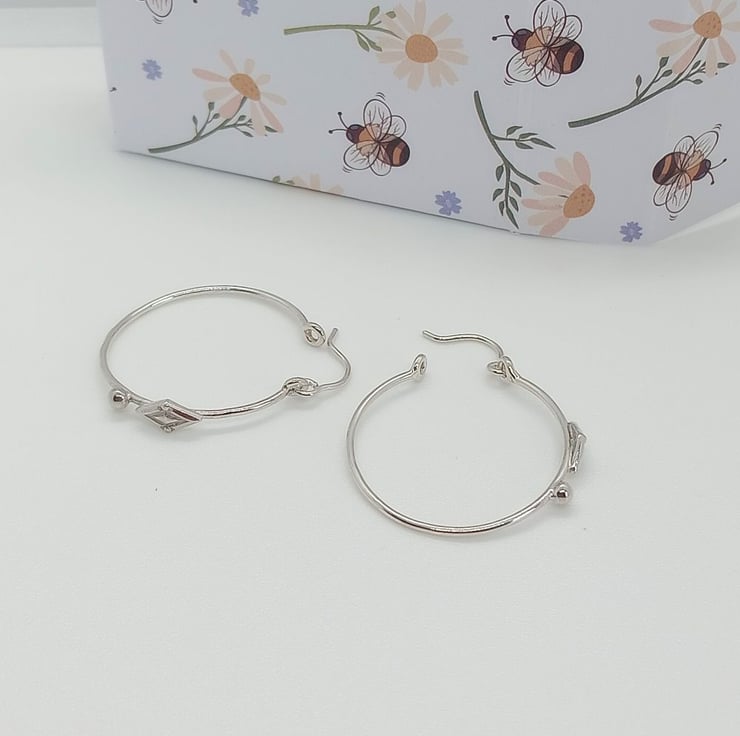 Solid sterling silver .925 hoop earrings with a diamond decorative feature and bead detailing at the front.