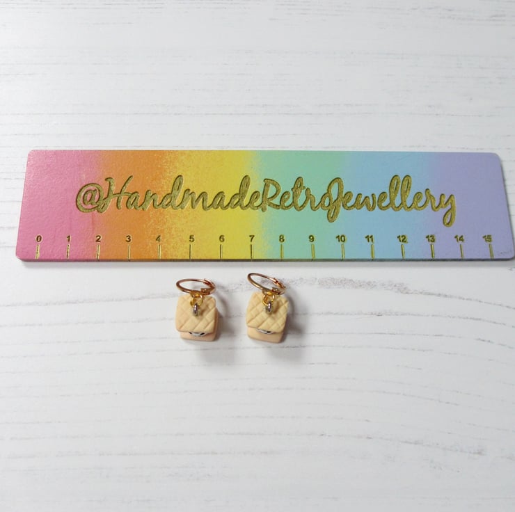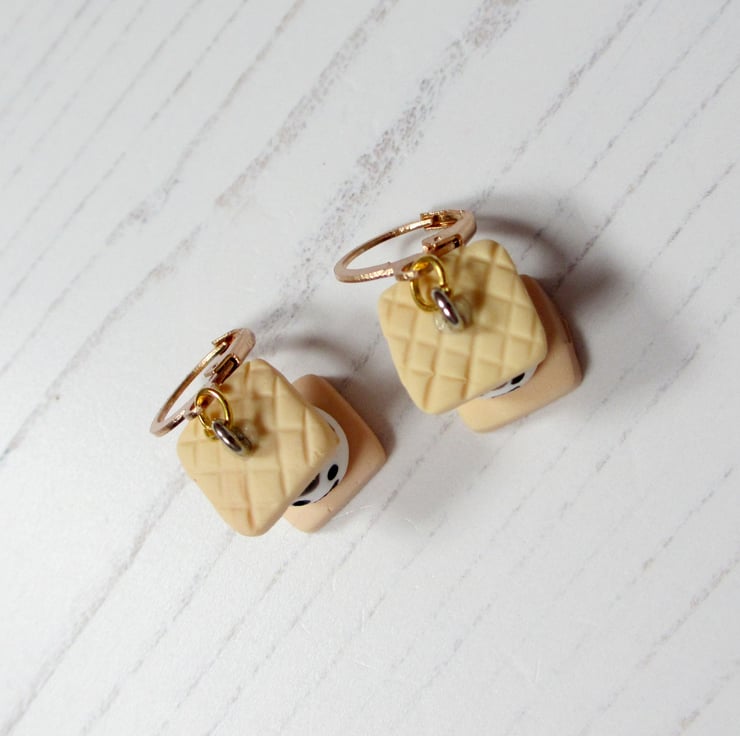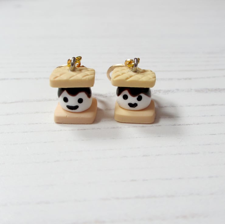 These mini earrings have been carefully hand crafted using polymer clay, made into teeny tiny S'mores! Finished with brown liquid clay for the chocolate effect, with a cute black smiley face added using acrylic paint to finish