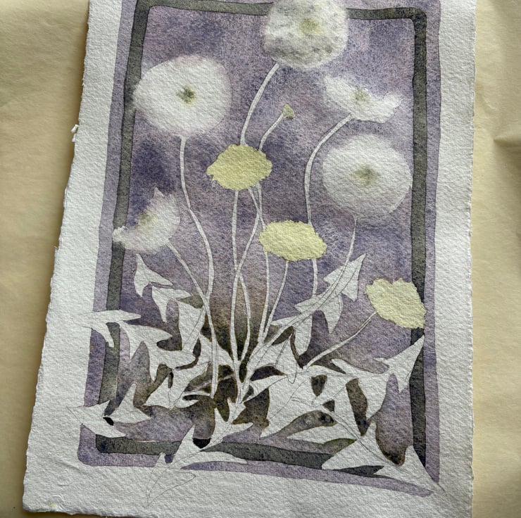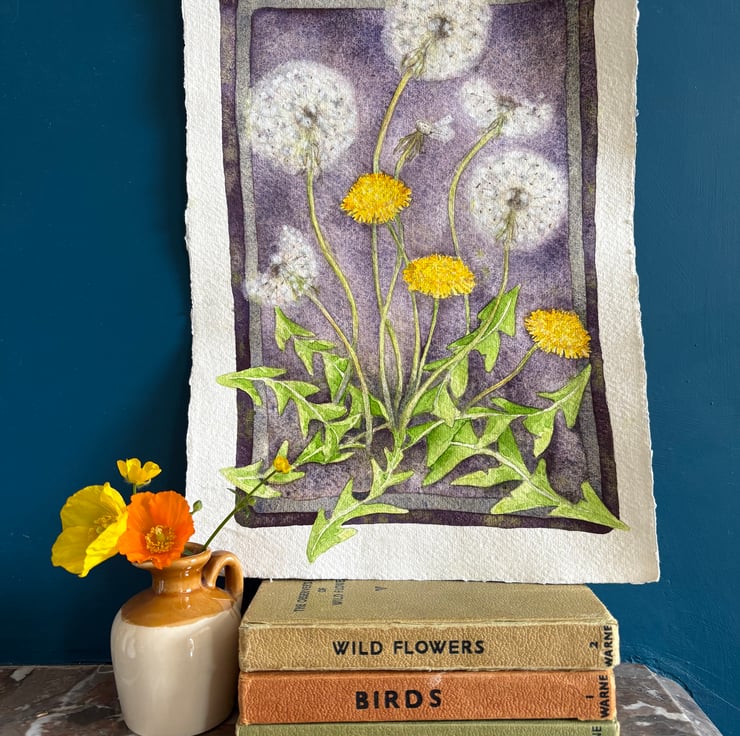 The seed heads are beautiful, so fragile with the nostalgia of lost days of childhood - I mean, who didn't 'tell the time' by blowing the seeds away? Turns out the seed heads take a lot of work to get right, I lost count of the the layers I painted to give them that fluffiness. The painting took way longer than you'd think, because of the seedheads!