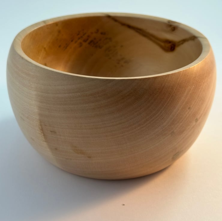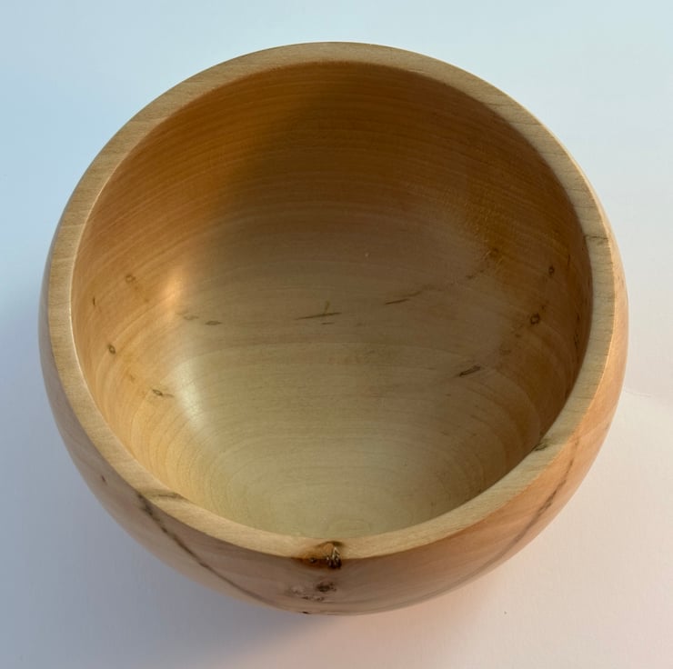 A wooden bowl 14 cm external diameter and 8.5cm tall. Could be used to keep keys or loose change.