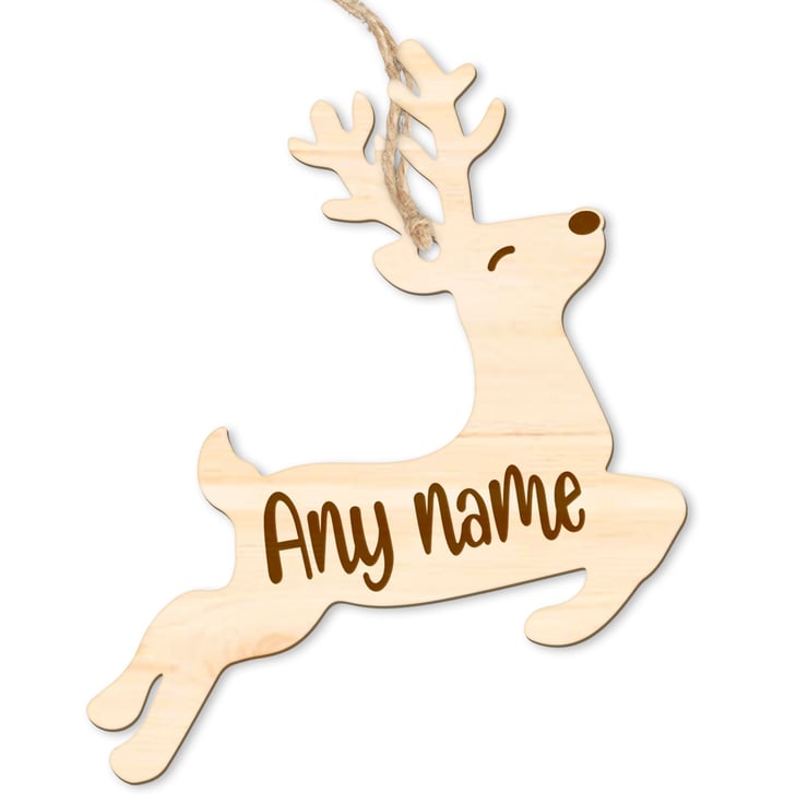 Bring a touch of rustic charm to your Christmas tree with this beautifully crafted personalised wooden reindeer ornament. Made from natural birchwood, this festive decoration can be engraved with any name up to 8 characters, making it a unique keepsake for family, friends, or little ones.