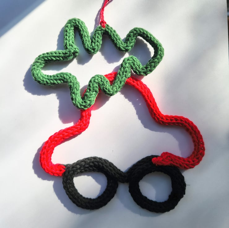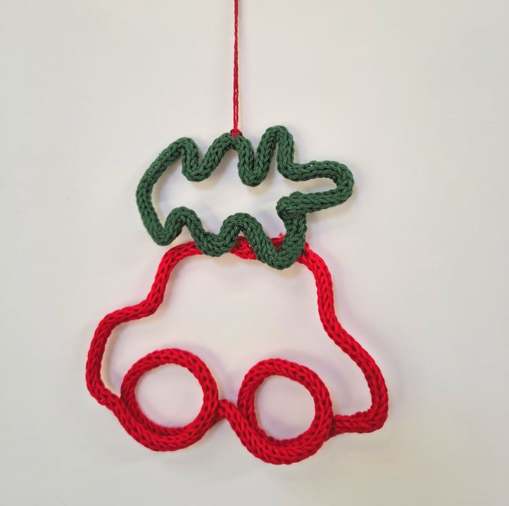 Going and choosing your tree can be a fun tradition each Christmas and strapping it to the car roof of the car (with or without posting someone through the net machine) can be a great start to festivities. This fun, knitted wire decoration has been created to bring a fun charm to your Christmas home. It would look great on the tree, as part of a garland or on the wall.