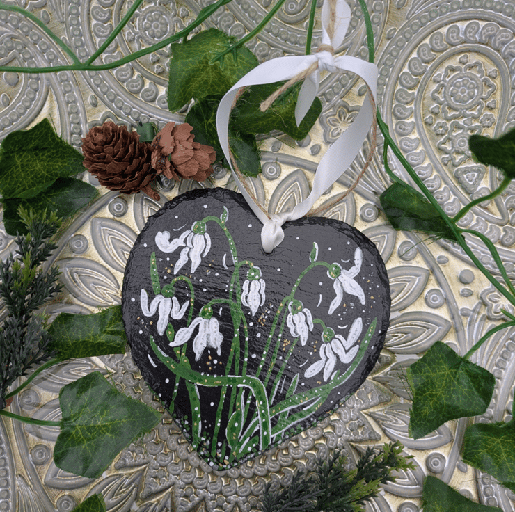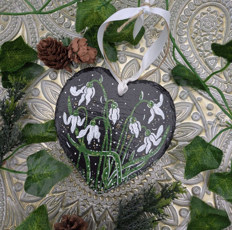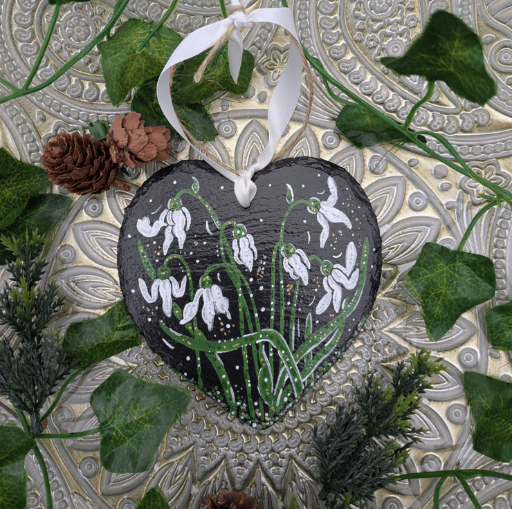 This beautiful hand-painted Snowdrops slate heart would make a lovely unique gift for a special birthday or Christmas.