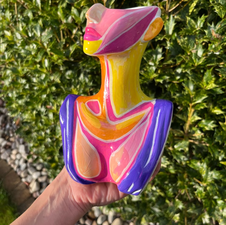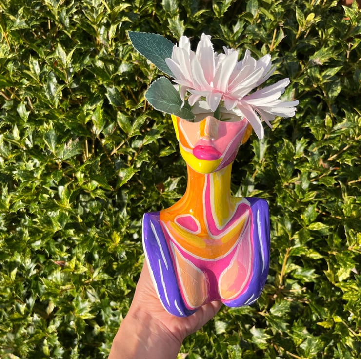 Pop Art Face Vase – Hand-Painted Body Sculpture, colorful Home Decor