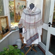 Can be tied in a number of ways. Interesting pattern on scarf. Will wear well with a winter coat.