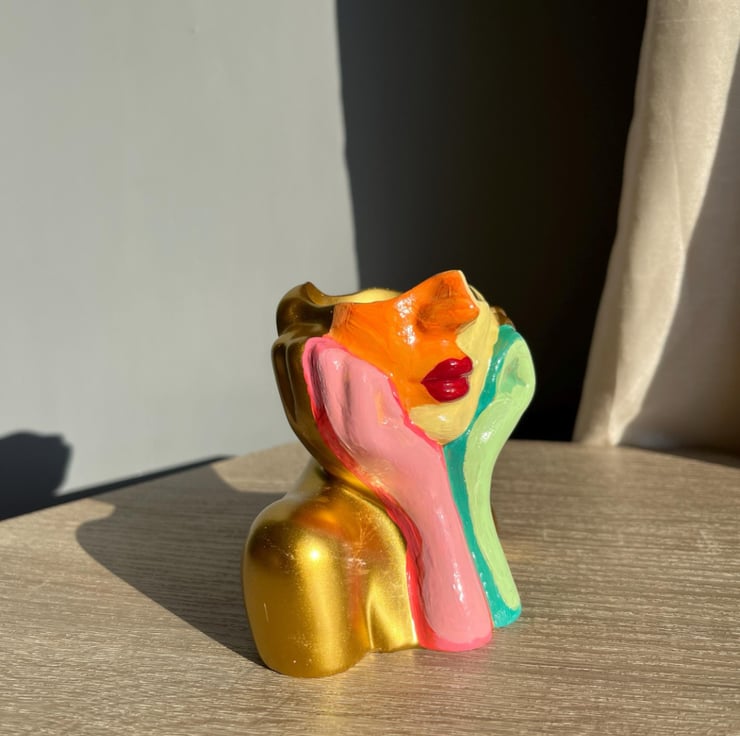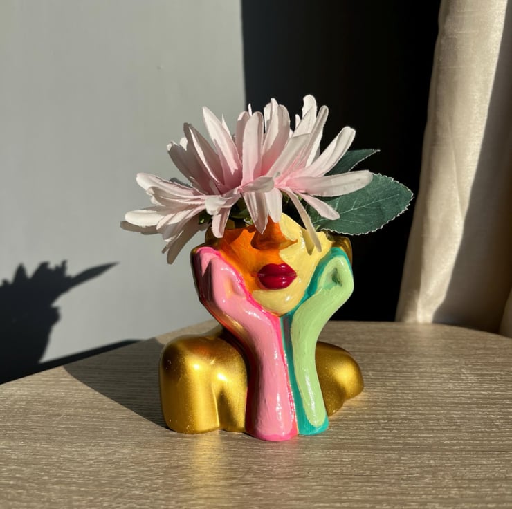 Add a burst of colour and personality to your home with this one-of-a-kind pop art face vase. Each piece is hand-painted in vibrant shades of pink, orange, yellow and green, celebrating bold design and feminine energy.