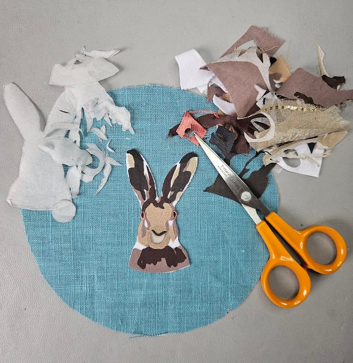 I create original textile art using a mix of fabric appliqué, freehand machine embroidery, and delicate hand stitching. Each piece begins with fabric and thread, layered and stitched to capture the texture and character of my subject.
