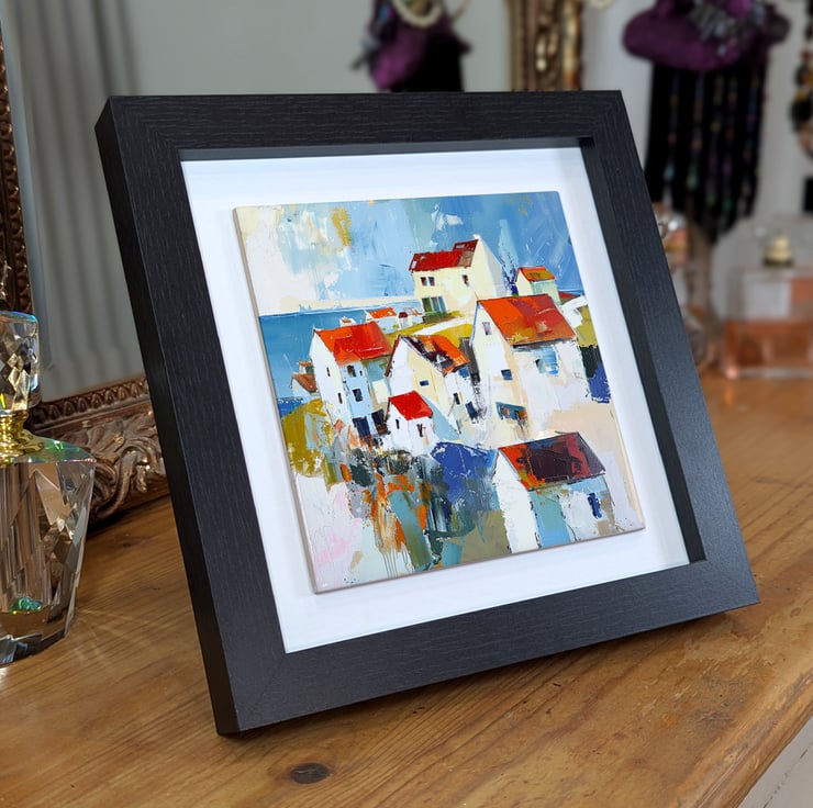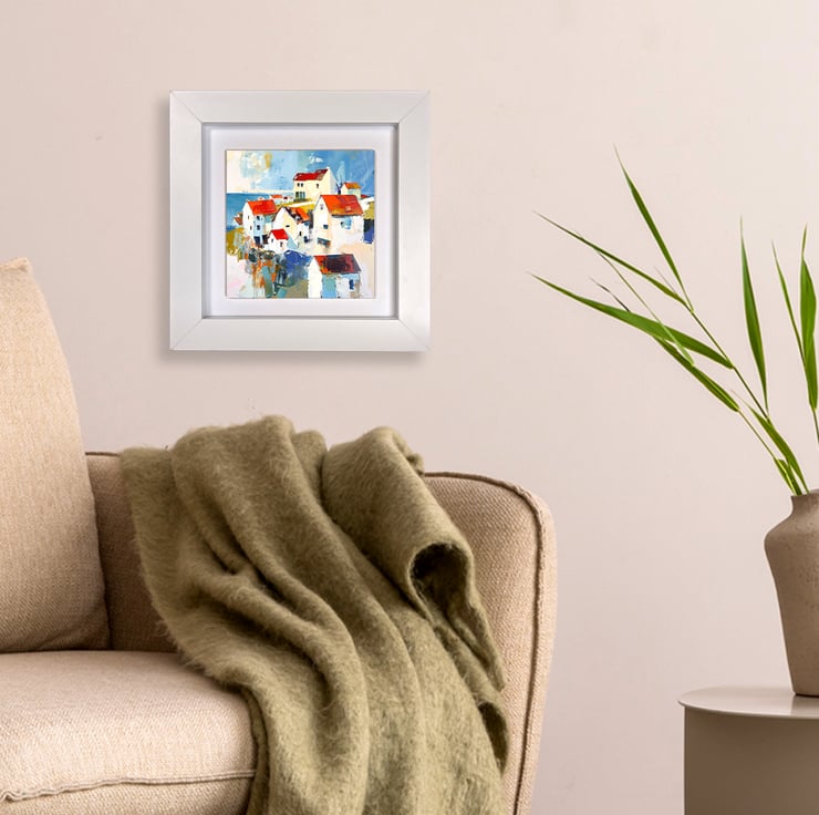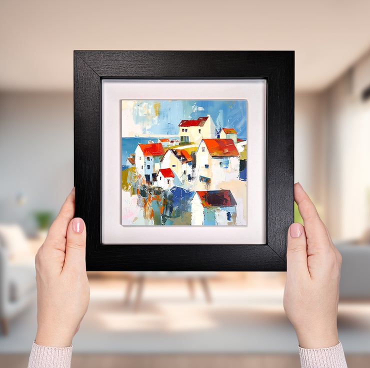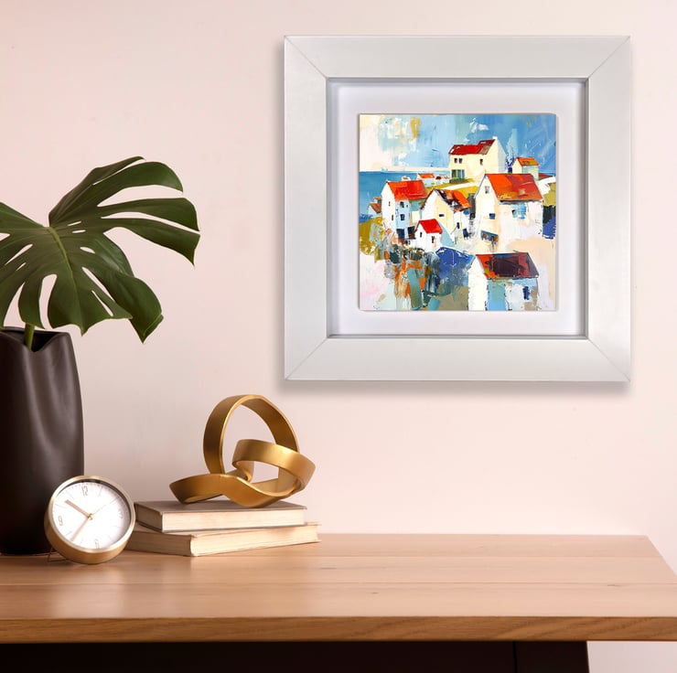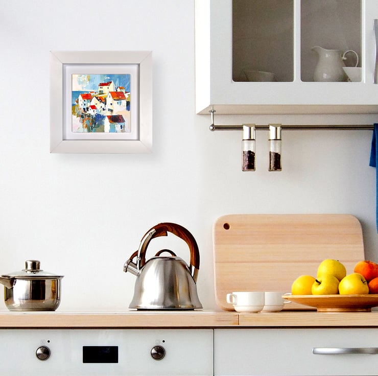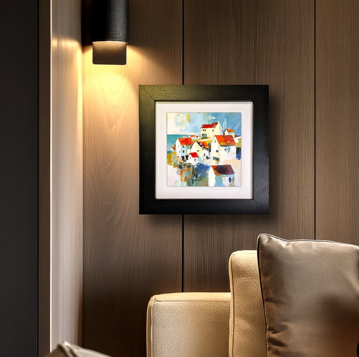 With soft brushstrokes and fresh colour, Coastal Village II offers a charming view of coastal homes basking in sea light. This uplifting scene adds a breezy, artistic touch to your interior – perfect for lovers of tranquil coastal wall art and relaxed, welcoming home décor.
