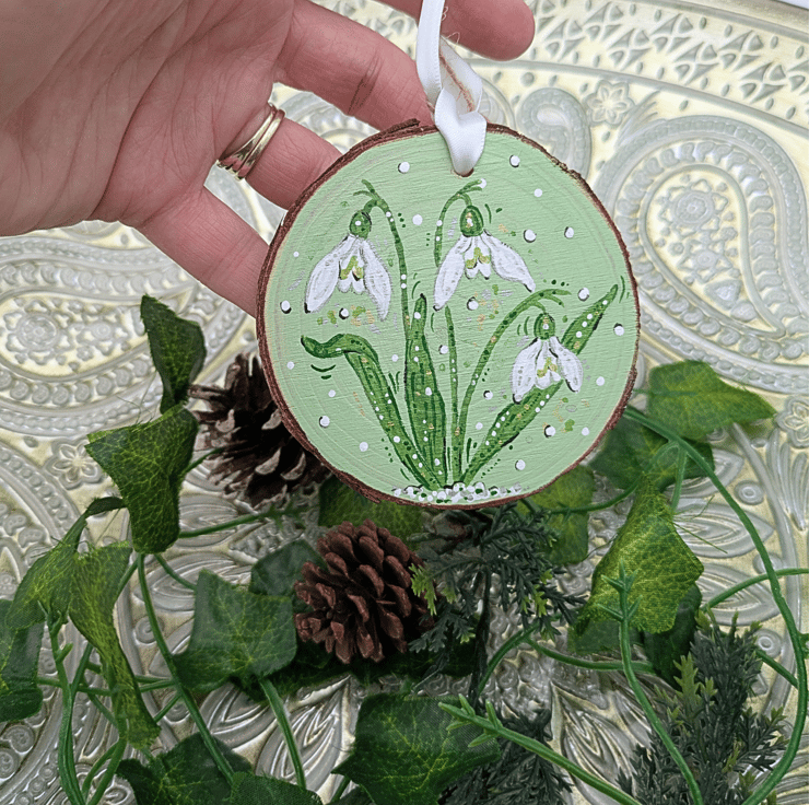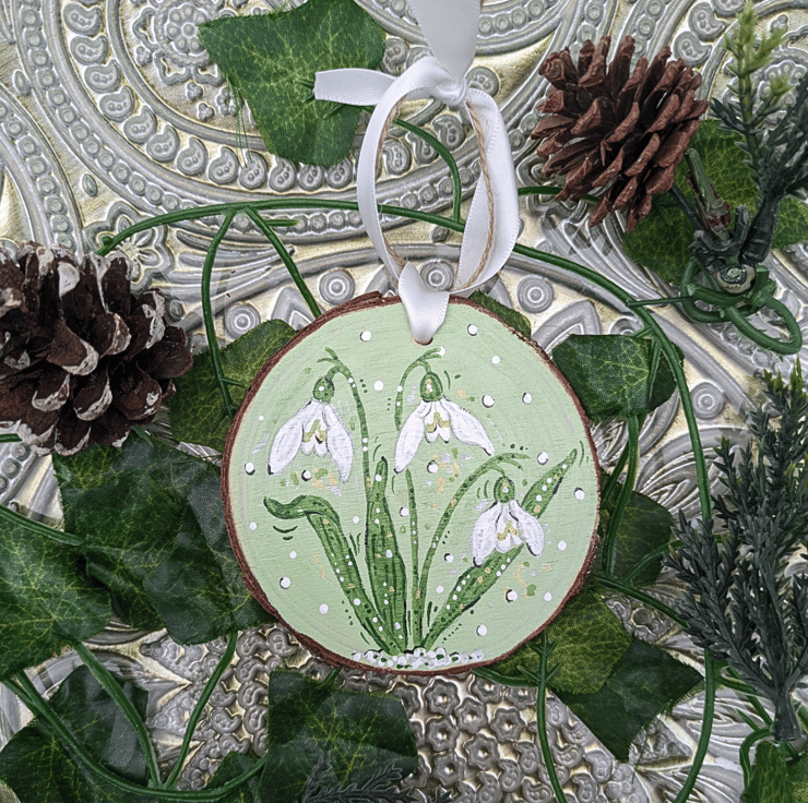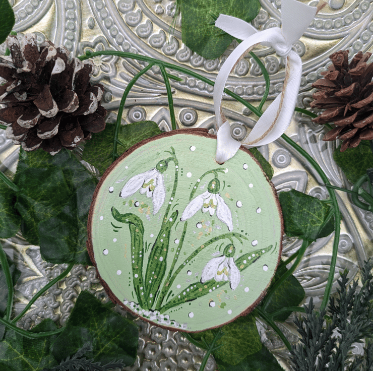 This beautiful hand-painted Snowdrops ornament would make a lovely, unique gift for any snowdrop or flower lover. A lovely gift for Christmas or a special birthday.
