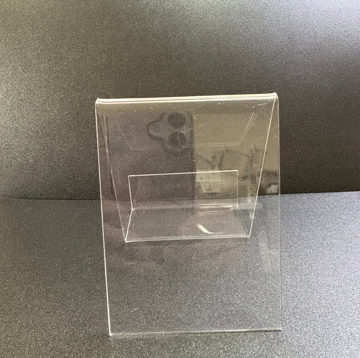 12 Acrylic card stands, ideal for a table display. Measure appropriate 4” x 3” x 1.75”.