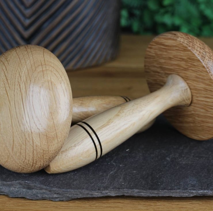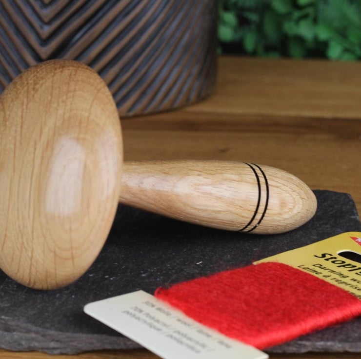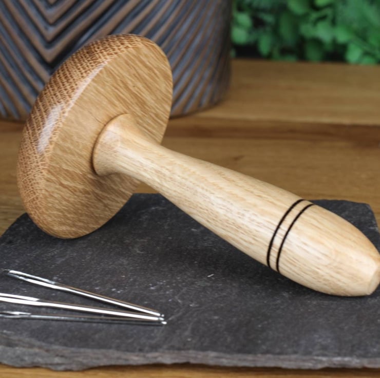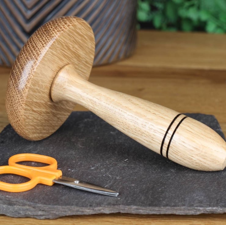 Crafted from sustainably sourced Oak, each darning mushroom measures approximately 120mm x 68mm (4 34" x 2 1116") and features a smooth finish achieved through multiple coats of Carnauba wax. The result is a wonderfully tactile tool that's a pleasure to use.There is also the option to purchase a small darning disc as a companion piece.