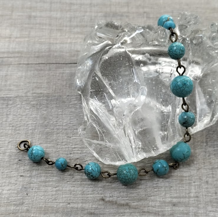 Lovely Turquoise beads are used with this linked bracelet.