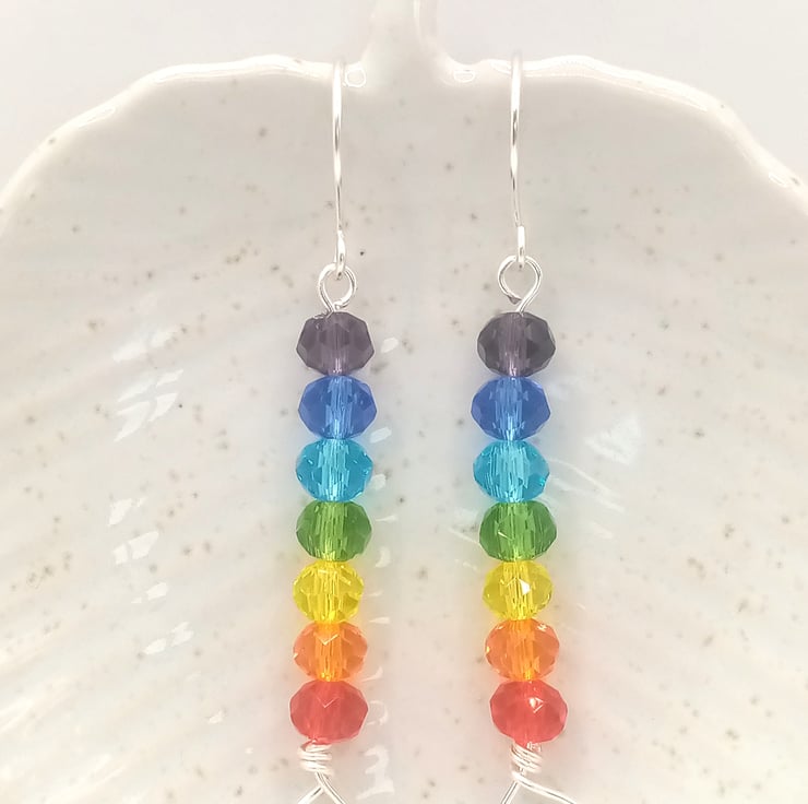 Add some sparkle and colour to your day with these striking chakra Briolette rondelle bead drop earrings.
