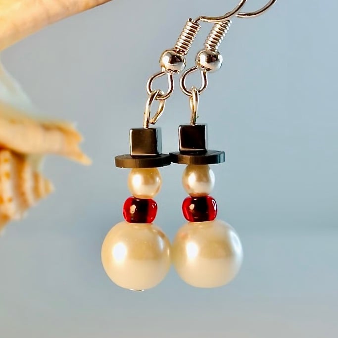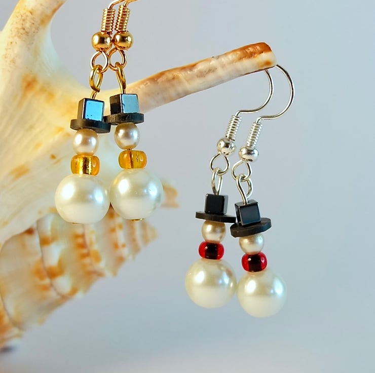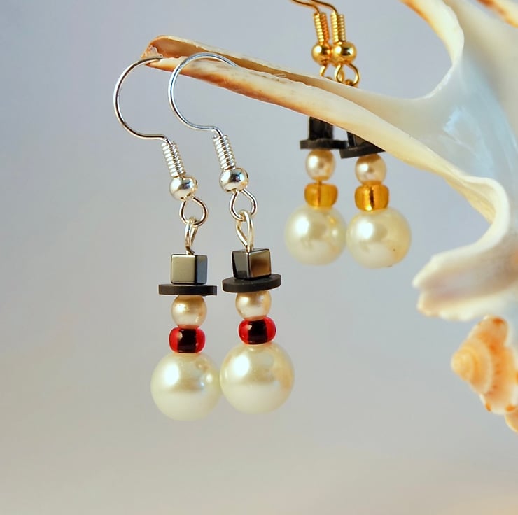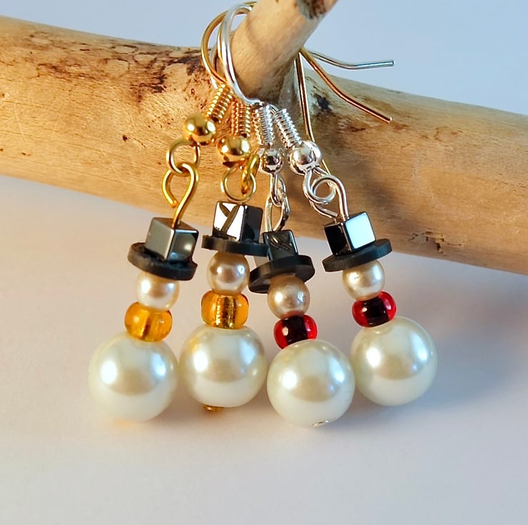 A twin pack of my snowman earrings at a special price - I no longer make these in pearl.so these are end-of-line.