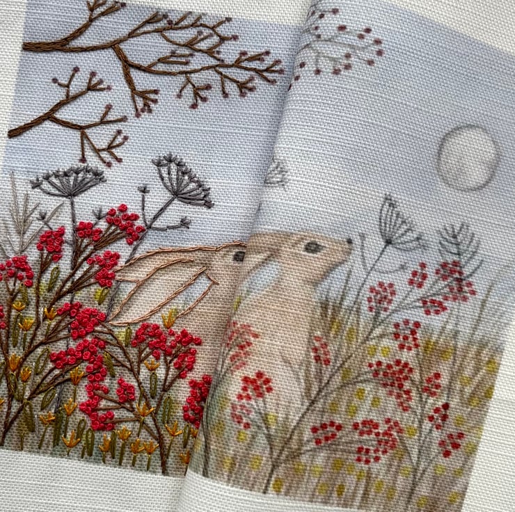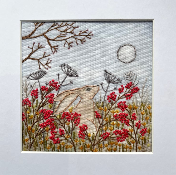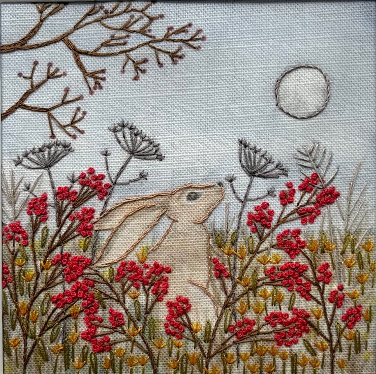 Inspired by folklore, countryside walks, and the quiet beauty of the night sky, the hare sits peacefully among berries and wild plants beneath the gentle glow of the moon. A whimsical project full of seasonal charm.