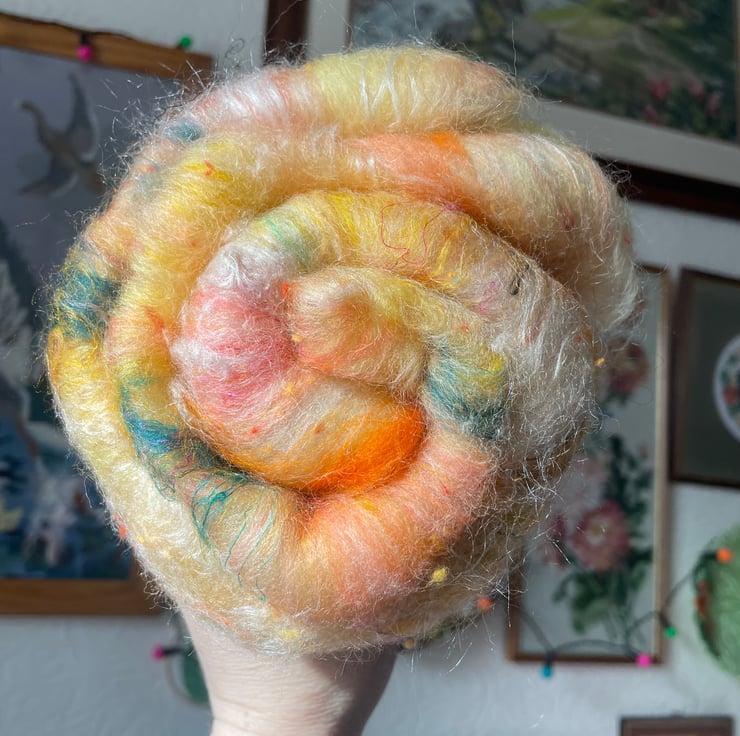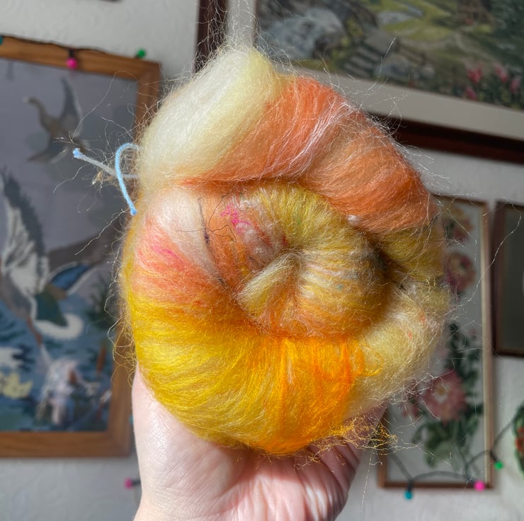 I always dreamed of carding beautiful art batts to spin and felt, I love combining colours that I find pleasing and am over the moon to be able to share these fibre batts with other crafters who don’t perhaps have access to a drum carder or even hand carders.