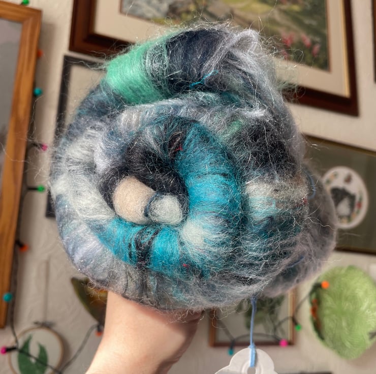 These batts have multiple layers within them and will reveal their secrets as you spin, don't be surprised to find more colour & texture underneath the top layer!!