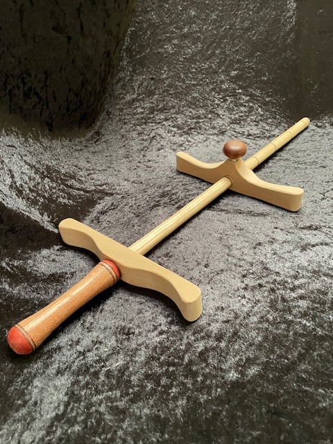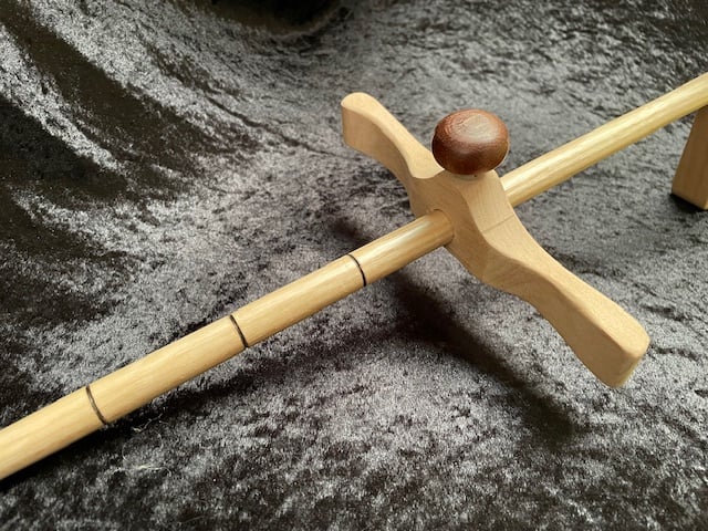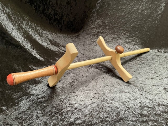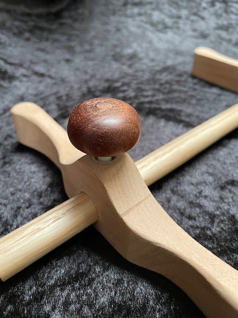 An adjustable niddy noddy which allows you to set your own size of hank. Its all made from hardwoods for durability and I have left the arms untreated to avoid contaminations.