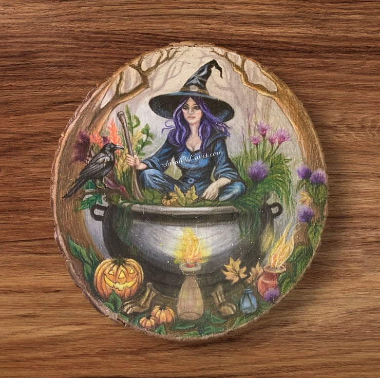 Celebrate the spiritual season of Samhain, the fun of Halloween and the beauty of autumn with this unique, handcrafted soft-wax pencil drawing on solid wood.