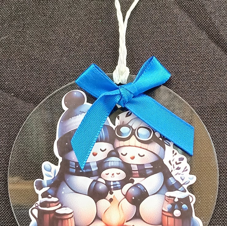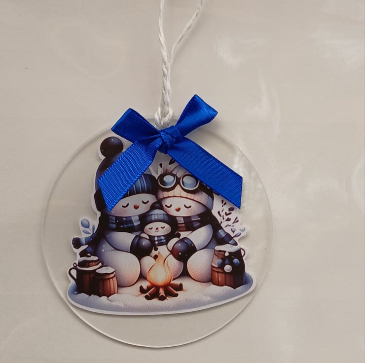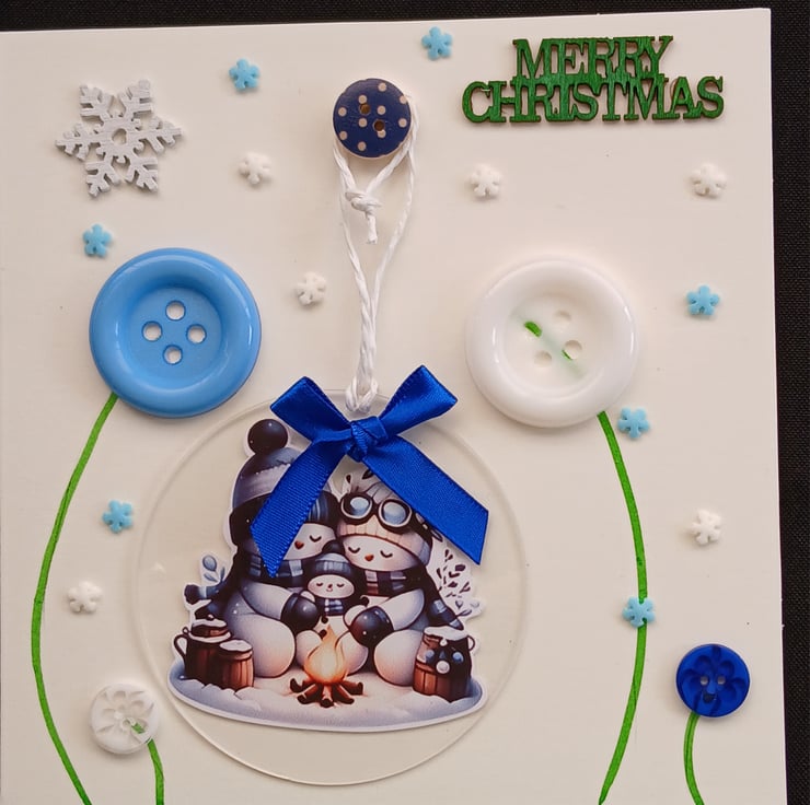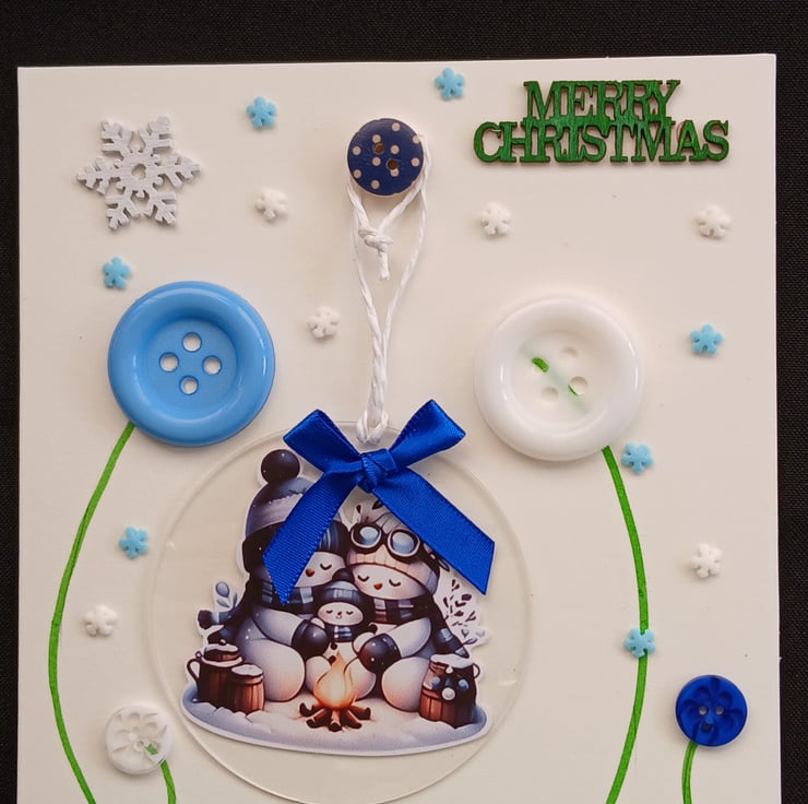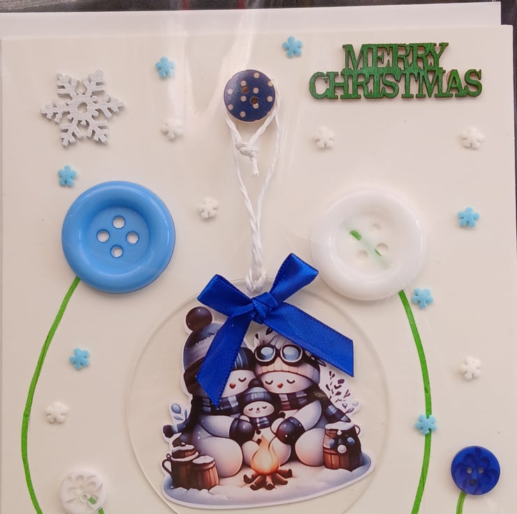 Handmade Christmas Card, incorporating a clear acrylic, snowman design, Christmas decoration.