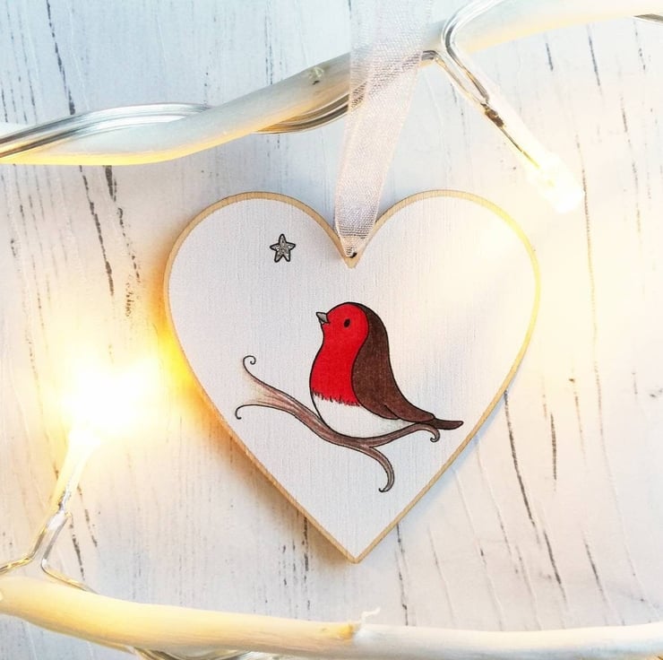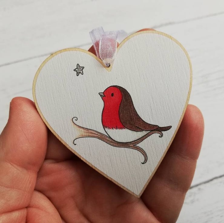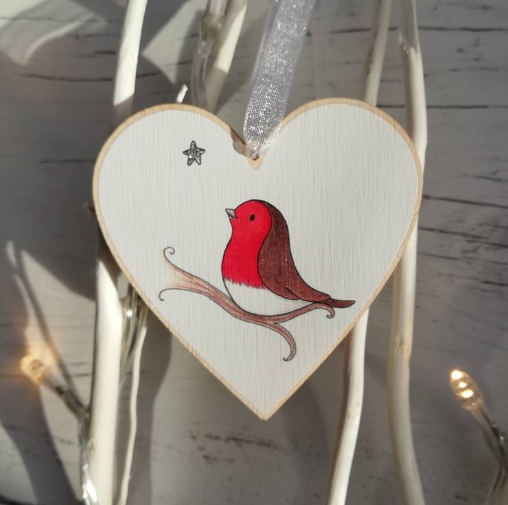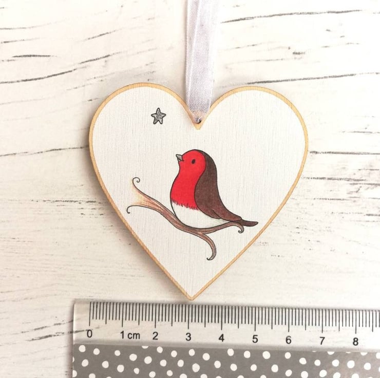 This decoration measures approximately 6.5cm across and is strung with ribbon.