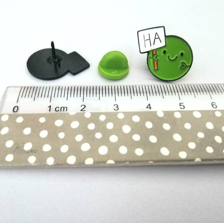 It is a little pea pin, and only measures approximately 1.9cm across and has a rubber clutch back.