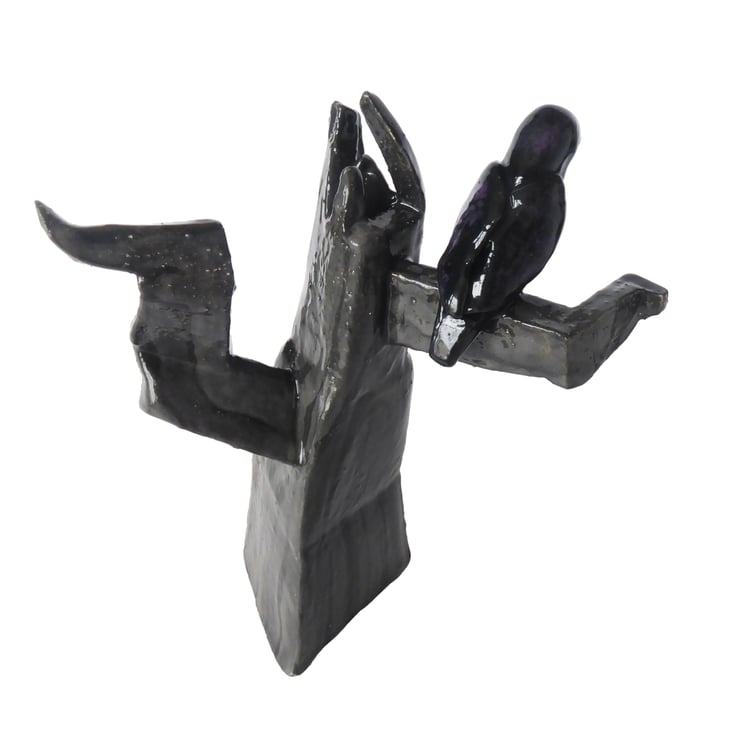 Crow in Tree Mini Ceramic Sculpture.