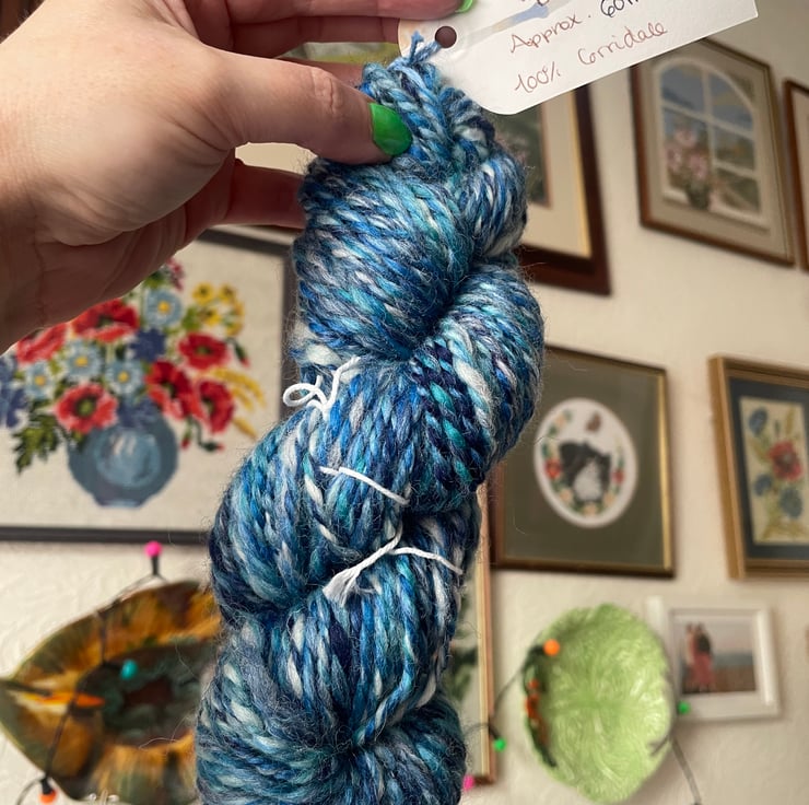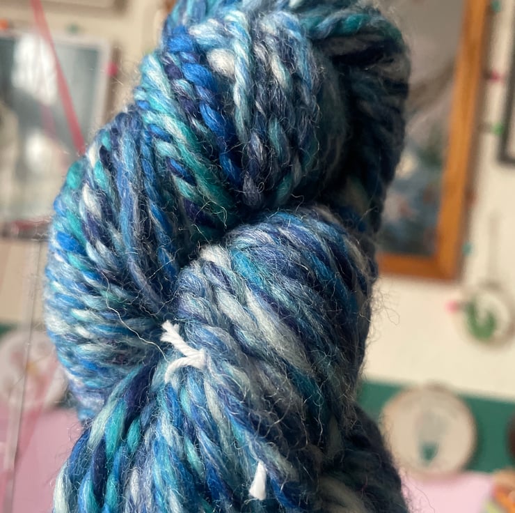 Colours are blended on a classic carder and then the yarn is spun on an Ashford traditional spinning wheel. All made by hand, this art yarn is perfect for your next project. That might be knitting, crochet, weaving, embroidery or felting! The only limit is your imagination!! If you're stuck for ideas, find me on Tiktok/insta where I regularly post projects I have completed using my handspun yarn.