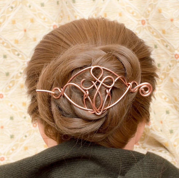 Handmade Celtic Copper Hair Bun Slide – Hair Brooch & Barrette ,gift for women