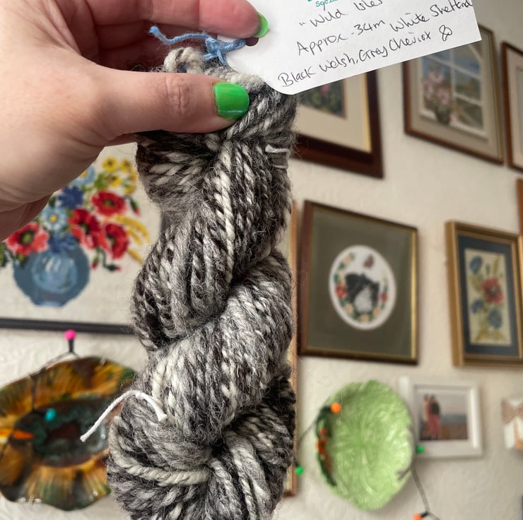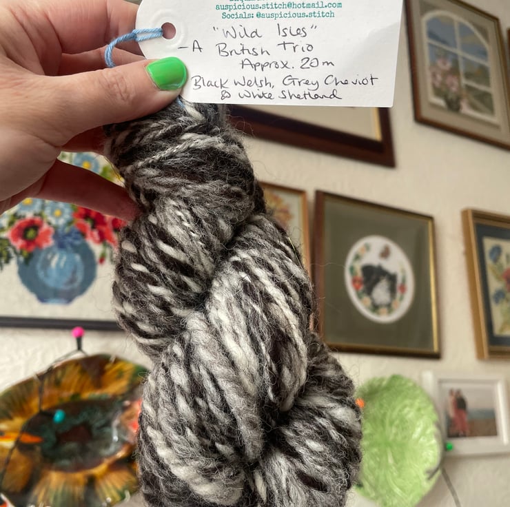 Colours are blended on a classic carder and then the yarn is spun on an Ashford traditional spinning wheel. All made by hand, this art yarn is perfect for your next project. That might be knitting, crochet, weaving, embroidery or felting! The only limit is your imagination!! If you're stuck for ideas, find me on Tiktok/insta where I regularly post projects I have completed using my handspun yarn.