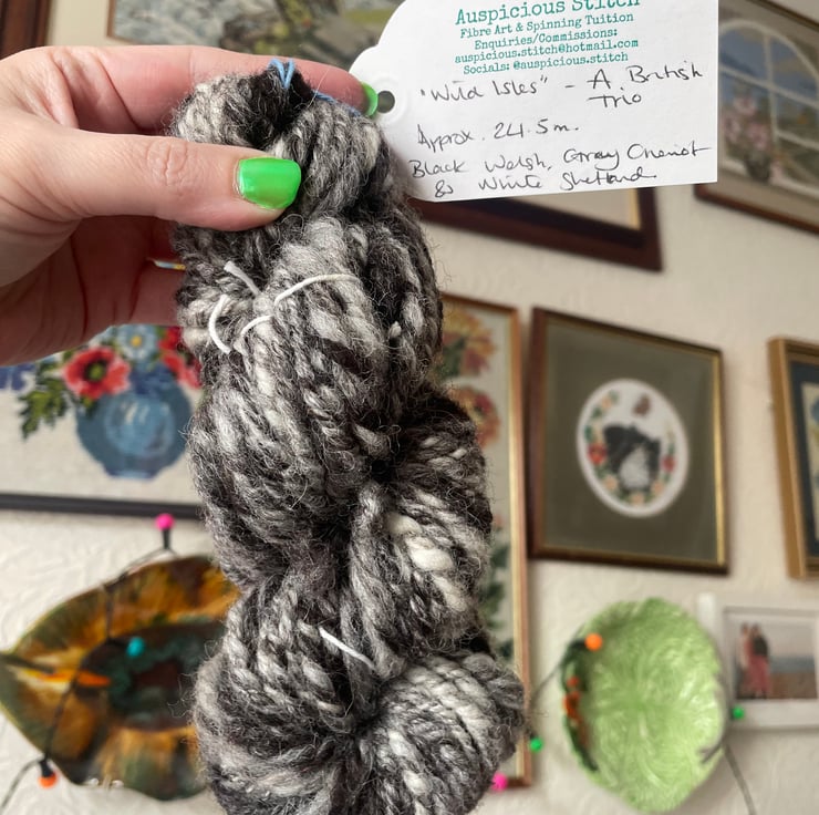 Fibre content: Black Welsh, Grey Cheviot, White Shetland