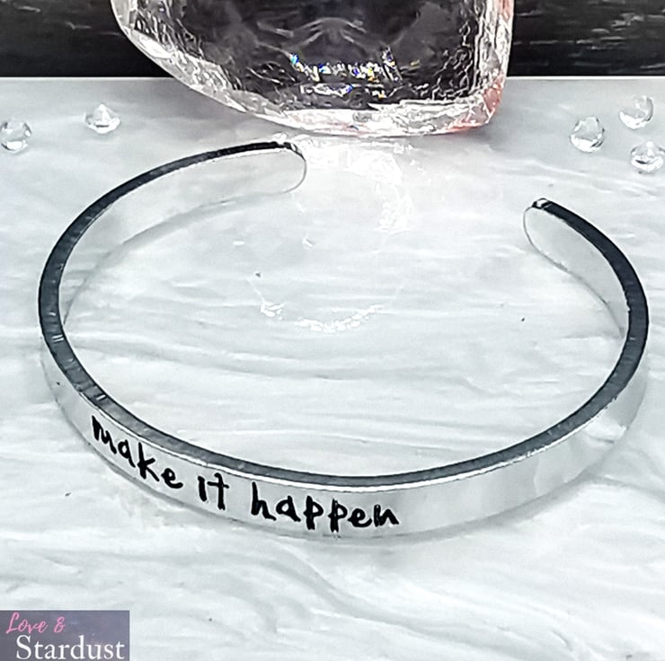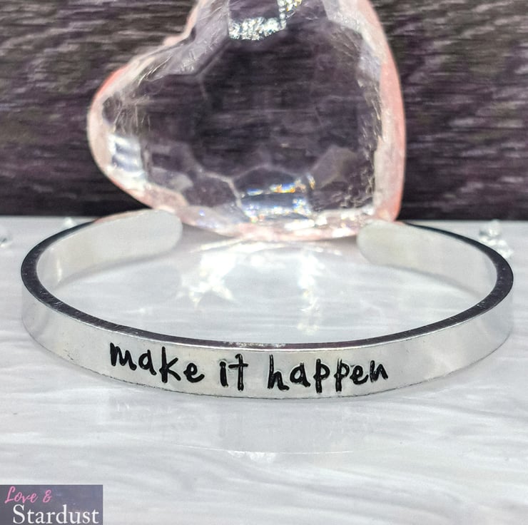 MAKE IT HAPPEN Hand Stamped Cuff Bracelet