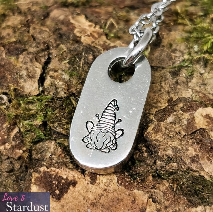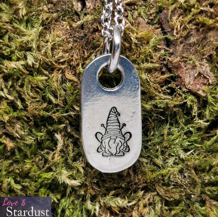 Pendant made from hand-cast pewter hand-stamped with a cute and fun design. Comes on a hypo-allergenic Stainless Steel chain in a pretty gift box.