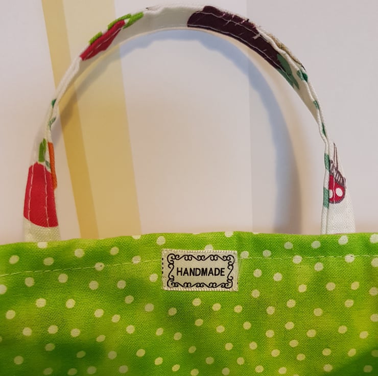 This fun cotton fabric makes a great little gift bag for a little person. Pop a gift in it, and they can keep using it themselves to keep treasures in.