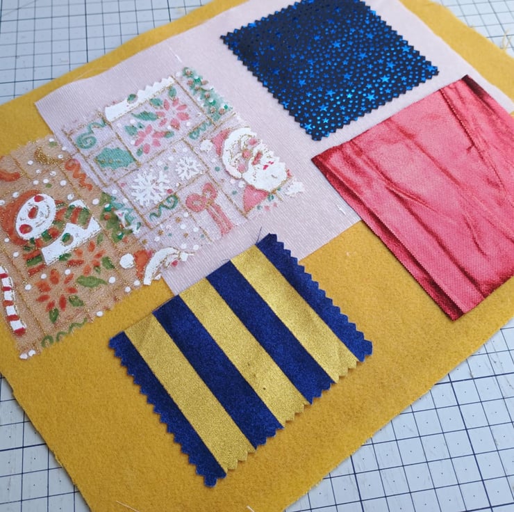 - Remnants of vintage cotton fabric with glitter highlights and modern quilting cotton