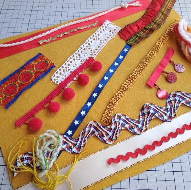 Vintage fabrics and trim will not have been tested to modern safety standards. Handle with care and keep away from naked flames.