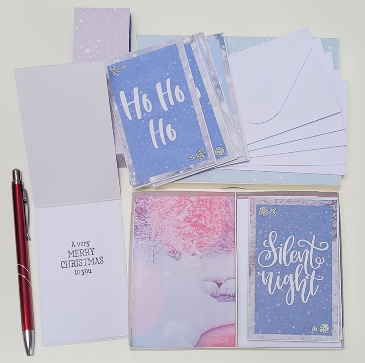 A sweet little set of 10 mini Christmas cards and envelopes packaged in a matching box.