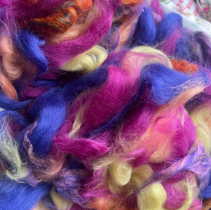 Listing is for one 100g fibre mix only, any background items are for photography purposes and aren’t for sale. I have tried to represent the colours as accurately as possible, however all screens display differently. Please contact me if you have any colour queries and I will do my best to help.