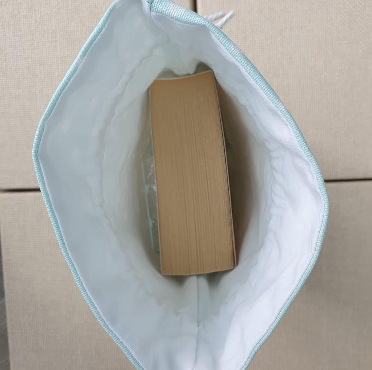 These bags fit my ideal present, a book and a bar of chocolate, but can accommodate any items up to 20cm long, 13cm wide and 5cm deep. Laid flat and empty the bag is 31cm long and 19cm wide.