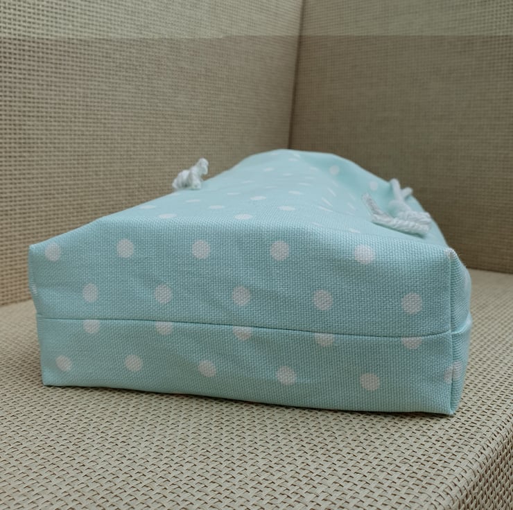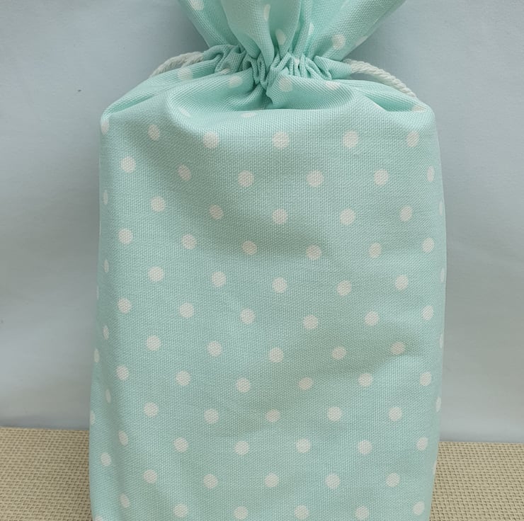 This reusable, fabric, gift bag is lined for extra strength and has a cord drawstring.